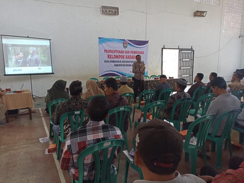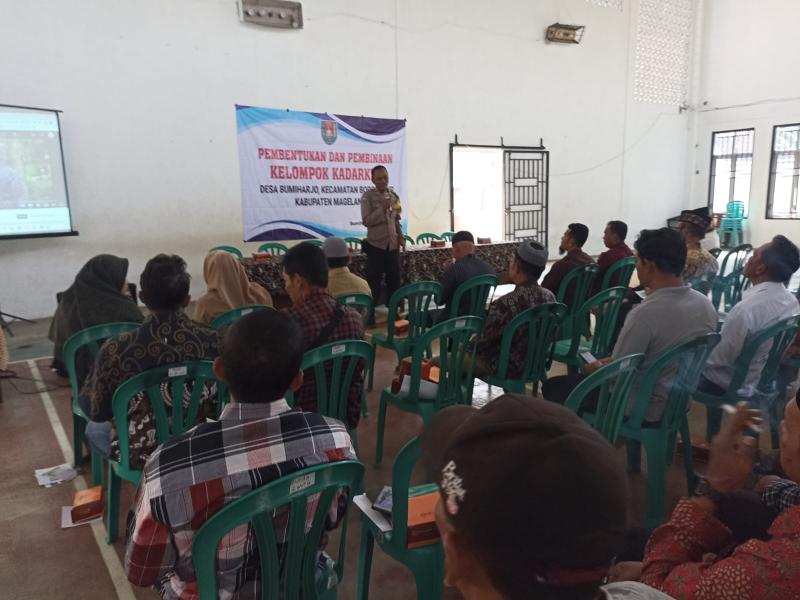 Selasa, (18/07/2023) diadakan kegiatan sosialisasi Pembentukan dan Pembinaan Kelompok Kadarkum. Tujuan kegiatan ini dilaksanakan untuk membentuk kelompok yang sadar akan hukum dan menaati segala peraturan yang ada. Tidak sedikit di warga Bumiharjo yang masih melanggar hukum beserta norma yang berlaku, contoh kecilnya adalah masyarakat masih sering membuang sampah disembarang tempat. Kegiatan ini dilaksanakan di Pagi hari pukul 08.30 WIB - selesai berlokasi di GOR Bumiharjo. Sebelum acara dimulai terdapat informasi sedikit dari Bp. Agus selaku Babinkamtibmas Bumiharjo. Beliau menyampaikan jika Polsek Borobudur kini pindah ke samping kantor BRI dekat Pasar Borobudur. Setelah itu pada acara inti diisi oleh Polresta, DPRD Magelang, dan BNN. Mereka menyampaikan materi pentingnya sebagai warga negara yang baik harus menaati peraturan yang berlaku demi terciptanya rasa aman dan damai. Salah satu contoh yang disampaikan adalah larangan mengonsumsi obat - obat terlarang atau narkoba. Seperti yang diketahui zaman sekarang banyak warga kurang edukasi bahaya menggunakan narkoba. Pemakaian narkoba tidak mengenal jenis kelamin, usia, jabatan, dan sebagainya misalnya saja banyak artis yang terjerat kasus narkoba. Adanya sosialisasi ini harapannya kelompok sadar hukum ini bisa segera terbentuk dan merekalah yang menjadi pelopor bagi masyarakat khususnya Bumiharjo untuk menaati aturan/hukum serta norma yang berlaku.