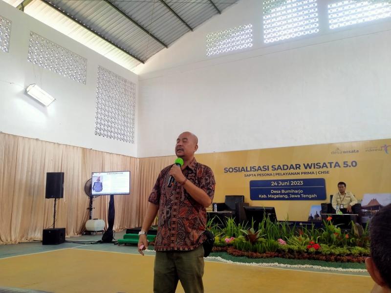 Sosialisasi Sadar Wisata 5.0 merupakan kegiatan yang dinaungi oleh Kementrian Pariwisata dan Ekonomi Kreatif Direktorat Pengembangan Deputi Bidang Sumber Daya Deputi Bidang SDM dalam rangka kampanye akan sadar wisata di desa. Kampanye Sadar Wisata 5.0 bertujuan meningkatkan pemahaman, pengetahuan serta keterampilan mengelola potensi desa wisata, sehingga pelaku pariwisata siap menjadi tuan rumah yang baik dalam menyambut kedatangan wisatawan. Sosialisasi ini dilaksanakan pada hari Sabtu, (24/06/2023) mulai pukul 09.00 - 16. 00 WIB bertempat di GOR samping balai desa dengan mengundang 100 warga Bumiharjo. Acara dengan mengundang 2 pemateri hebat bernama Bp. Husen Hutagalung merupakan penggiat wisata dan Ibu Elly merupakan sarjana psikologi yang juga aktif di bidang pariwisata. Materi yang dibawakan oleh mereka mengenai sapta pesona, pelayanan prima, dan CHSE dengan dua sesi Sesi pertama pagi hari dilisi alth Bpk. Husen, sementara sesi kedua diisi oleh Ibu Elly. Secara kesuluruhan acara berjalan dengan lancar dan antusias masyarakat Bumiharjo cukup besar yang dibuktikann ketika sesi diskusi tanya jawab.Diakhir acara juga ada pembagian doorprize bagi penariya terbaik dan mereka yang beruntung. Harapannya selesai acara ini warga Bumiharjo menjadi lebih melek akan pentingnya menggeluti di bidang pariwisata. Dengan demikian, secara tidak langsung dapat meningkatkan perekonomian masyarakat Bumiharjo.
