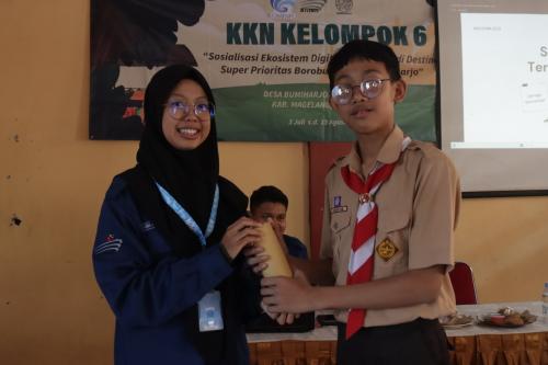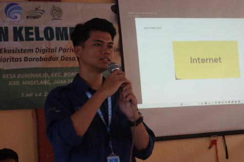 Jumat 21 Juli 2023 - Mahasiswa Kuliah Kerja Nyata (KKN) Sekolah Tinggi Multimedia (STMM) Yogyakarta kelompok 6, menggelar kegiatan Sosialisasi Peningkatan Skill Digital yang ditujukan kepada siswa/i SMP Negeri 1 Borobudur, Desa Bumiharjo, Kecamatan Borobudur, Kabupaten Magelang, Jawa Tengah. (21/07/2023)